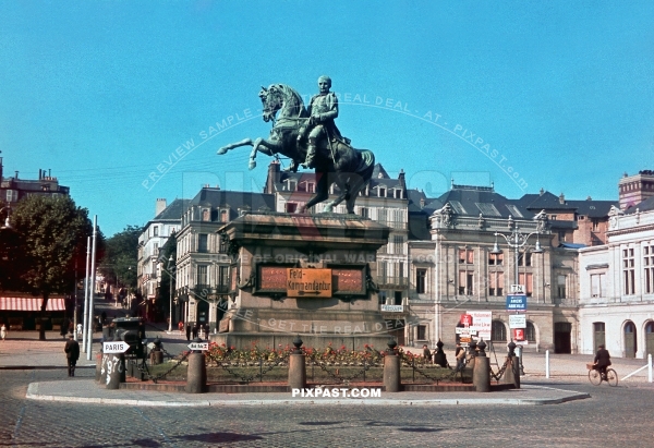 Equestrian statue of Emperor Napoleon I in Rouen France 1940. Wehrmacht Feld Kommandantur