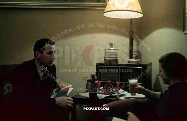Family drinking beer and listen to the radio. Frankfurt Germany 1940