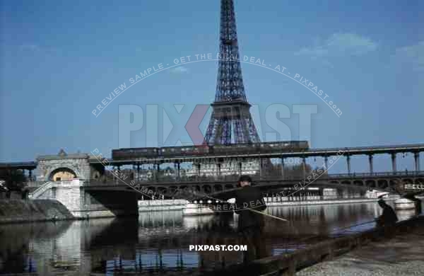 fisherman at the Pont de Bir Hakeim in Paris, France 1940