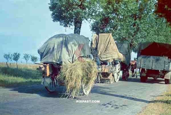 French Refugees fleeing and passing german army Convoy. France 1940