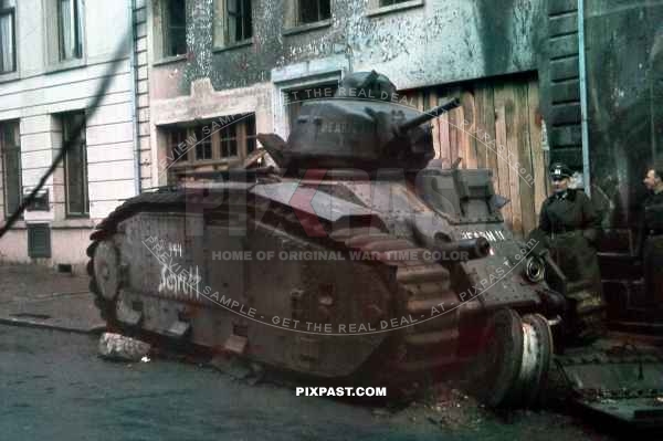 French Renault Char B1 tank Bearn II, hull no. 401. Beaumont rue Madame, Belgium. 16th June 1940. 37e BCC for want of fuel.