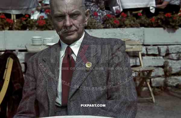 Gentleman sitting in restaurant beside Berlin Funkturm. Berlin Germany 1937.