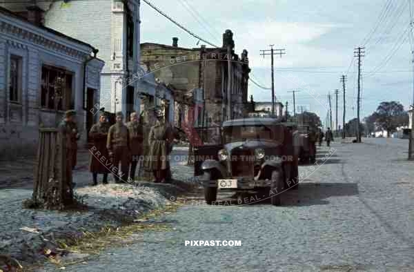 German 94. Infantry division soldiers take Russian military prisoners, Lutsk, Ukraine, 1941, Russian, GAZ AAA,