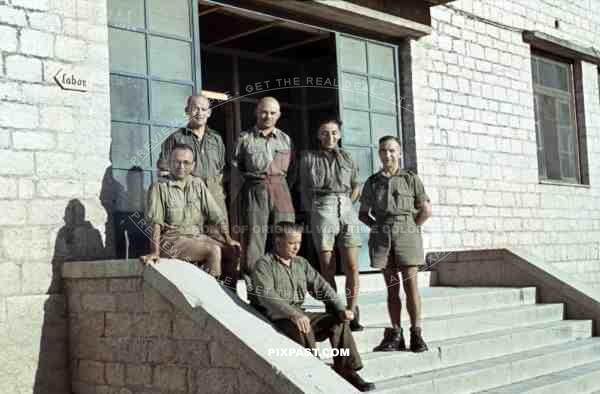 German Afrika Korp military medical doctors, beside Laboratory, Tunisia, 1942. Tropical uniform.