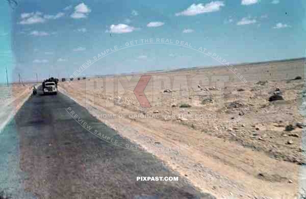 German Afrika Korp supply convoy in the African desert, North Africa 1942