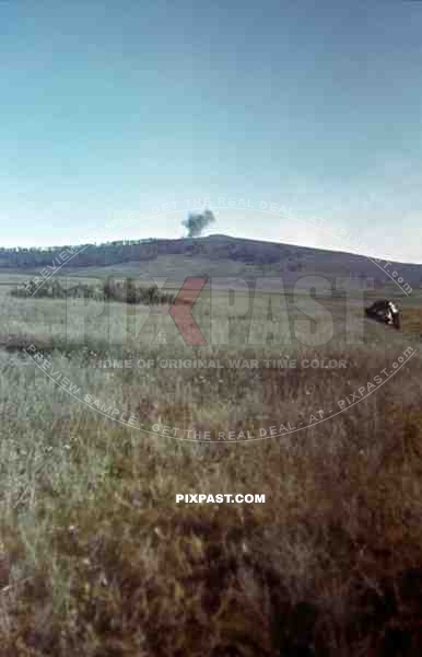 German armoured car fires on Russian army position, Ukraine, 1942, 22nd Panzer Division.