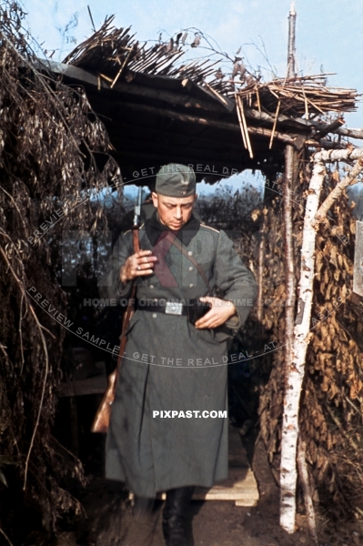 German army sentry guard with Kar98 rifle in Bunker in Westwall on french boarder 1940. 14th infantry division