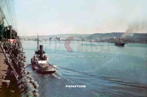German cargo ship transporting troops into Oslo Norway May 1940. Invasion of Norway. Operation Weserubung