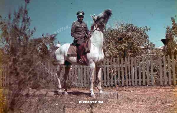 German Color Slide Photo Wolfgang Wehrmacht Cavalry officer on horse uniform Ukraine 1942