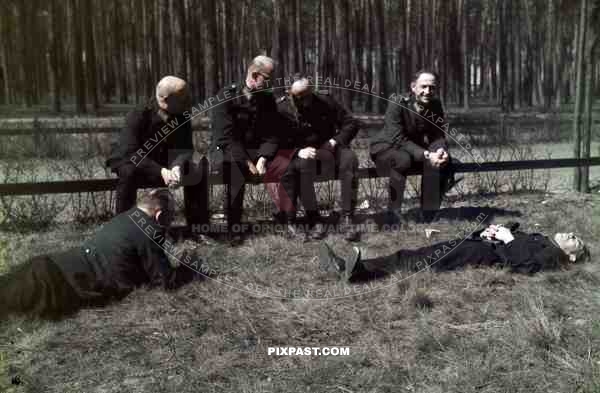 German Field Police wresting in woods after trainning day. Bremen, 1939.