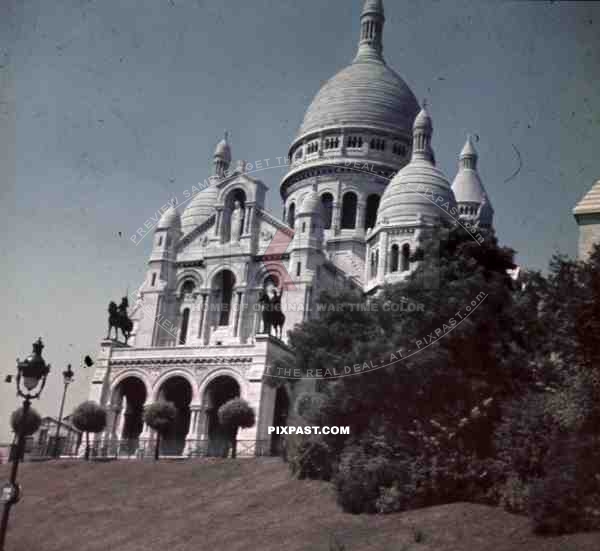 German flak soldiers steps of Church Cathedral Sacre Coeur Paris France 1940 tourists.