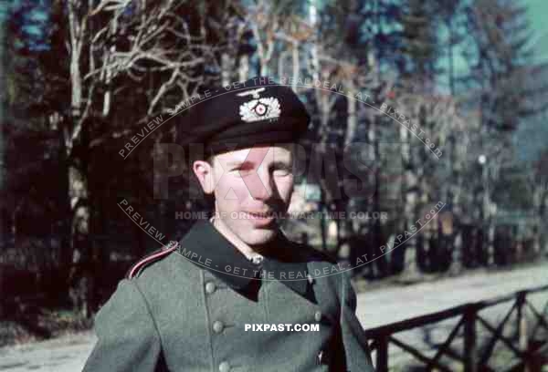 German Funker Radio Panzer soldier with Black Panzer Beret Schutzmutze in Ruhpolding Germany 1939