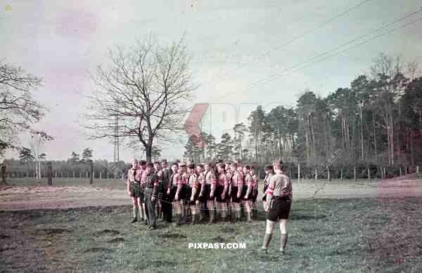 German Hitler Youth troops trainning marching outside Lubeck Germany 1943