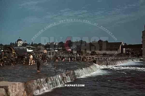 German infantry crossing River Ros, Bila Zerkwa Ukraine 1941, White Church. 9. Infantry Division.