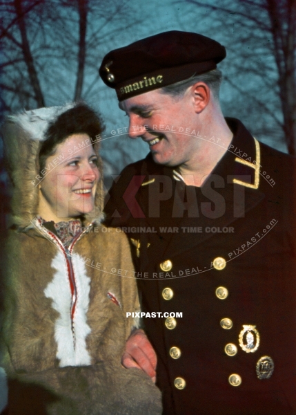 German Kriegsmarine sailor in uniform visits girlfriend in Rostock Germany 1942. Sports badge. Minesweeper Badge