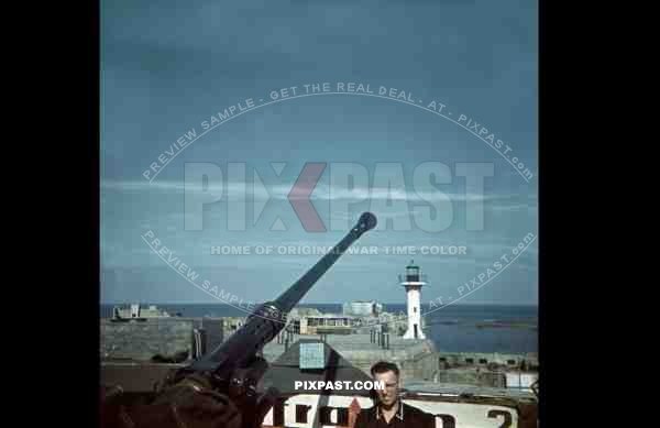 German Luftwaffe flak officer of the Leichte Flak Abteilung 99 (mot) in Fort de l_qt_Ile Pelée, Cherbourg France 1940.