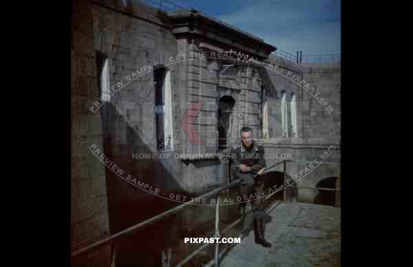 German Luftwaffe flak officer of the Leichte Flak Abteilung 99 (mot) in Fort de l_qt_Ile Pelée, Cherbourg France 1940.
