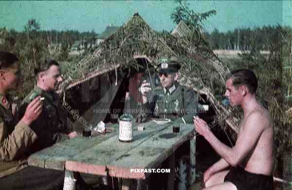German Luftwaffe FLAK officers with wehrmacht officer sun glasses Wiederholungsspange DKiG Zeltbahn tent Russia 1941 3. Flak Abt. 701