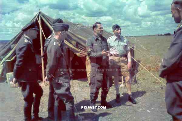 German Luftwaffe Knights Cross Winner Stuka Bomber Ace Johann Zemsky talks to stuka pilots near Stalingrad 1942