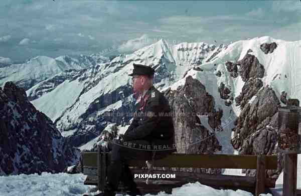 German Luftwaffe officer with ribbon bar and Krim shield in Norway mountains, snow winter 1943.
