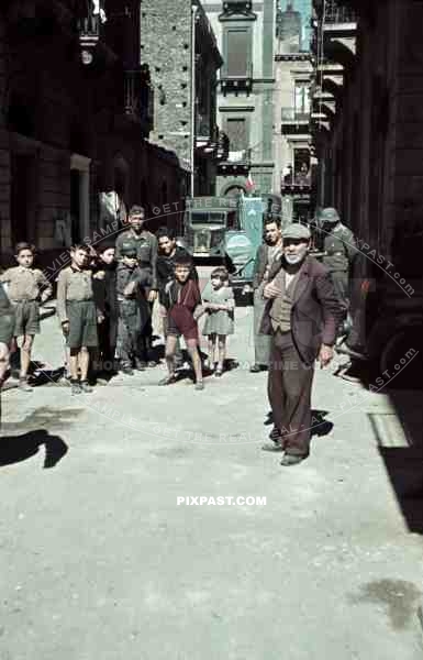 German Luftwaffe soldier personnel street shops car truck lorry helmet children kids grandad poor houses buildings Greece 1942