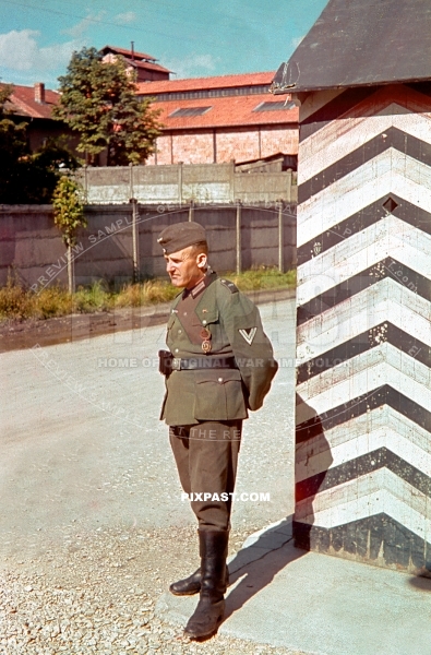 German soldier Obergefreiter Infantry unit 899 on guard WACHE in Poland 1939. Wearing SA Sports Badge in bronze