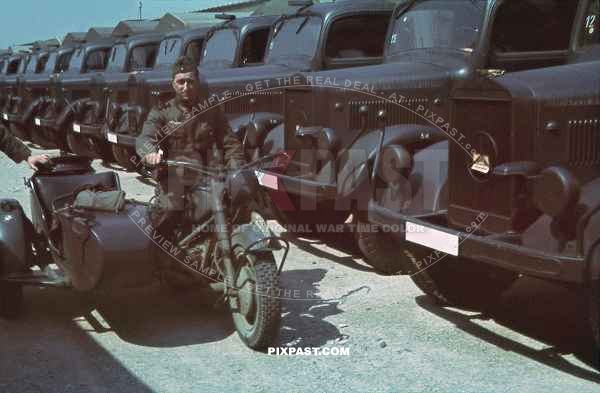 German soldier with his BMW R75 Motorbike. Heereszeugamt of the OKH. Russia 1941. 177. Division Kraftfahr Ersatz 45
