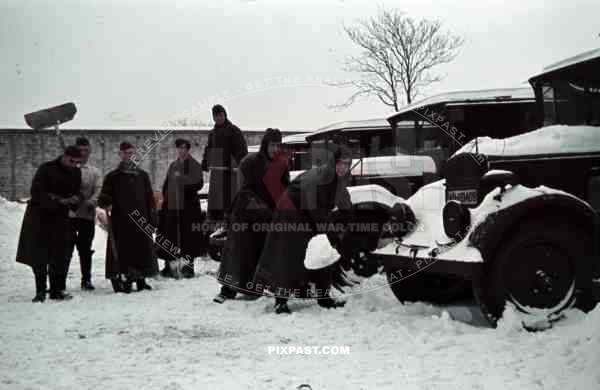 German soldiers Norway 1941 supply trucks lorries snow cleaning shovel winter jackets