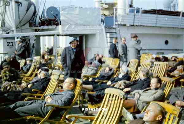 German Tourists laying in the sun on board a German KDF Cruise liner in the Norwegian Fjords. 1937