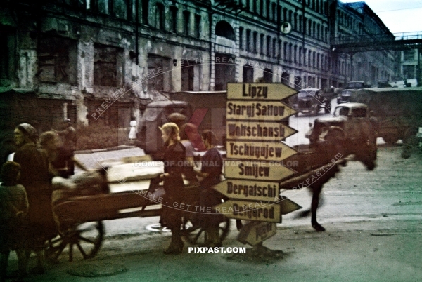 German Wehrmacht supply trucks entering Kharkiv Kharkov Ukraine. Battle 3 1943