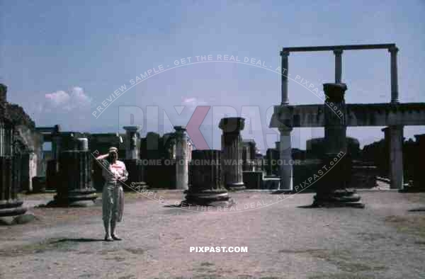 German woman visiting the ruins of Pompeii, Italy 1938