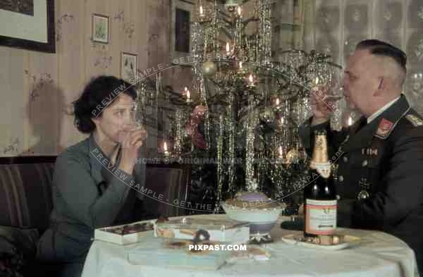 German WW1 veteran Flak Officer Major, Christmas Day with wife, Bad Saarow, Pieskow, Germany, 1939.