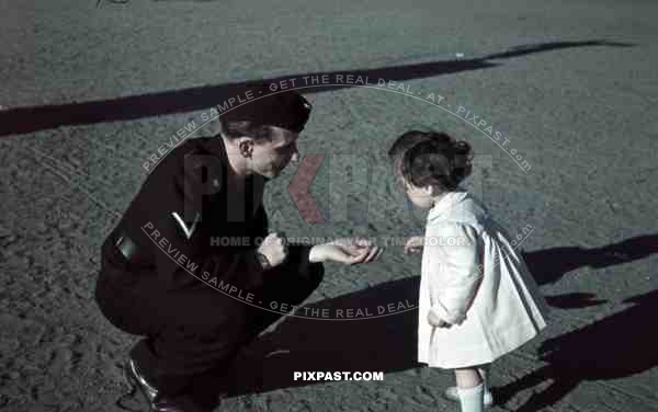 Germany 1944 Panzer Tank officer in black tunic totenkopf death head skull visit son family pink piping