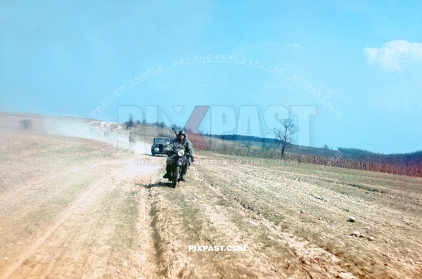 Germany army Kradmelder motorbike Messenger racing to Stalingrad summer 1942. 297 Infantry Division