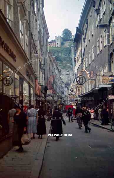 Getreidegasse and the St. Blasius church in Salzburg, Austria 1940