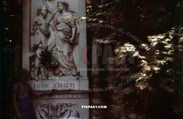 Girl at the Franz Schubert tomb at the Vienna Central Cemetery, Austria 1939
