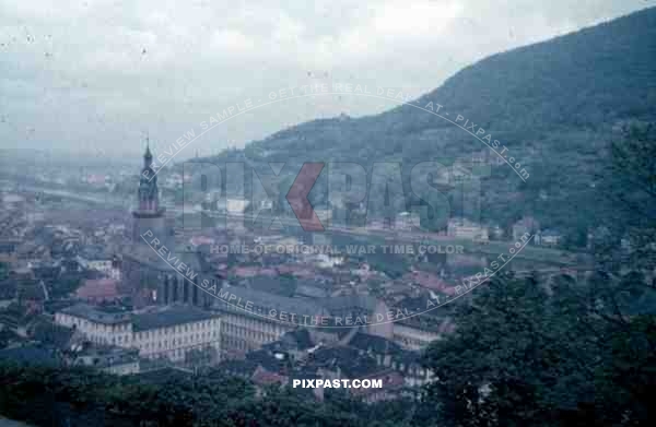Heidelberg Castle 1936, view of city, Church of the Holy Spirit,