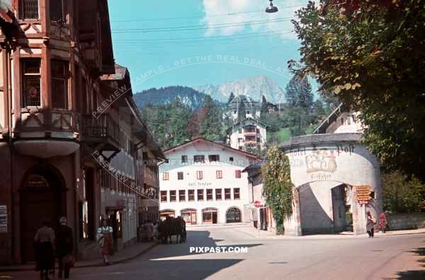 Hotel Post Berchtesgaden Bavaria Germany 1937. Road Signs and Pedestrians.
