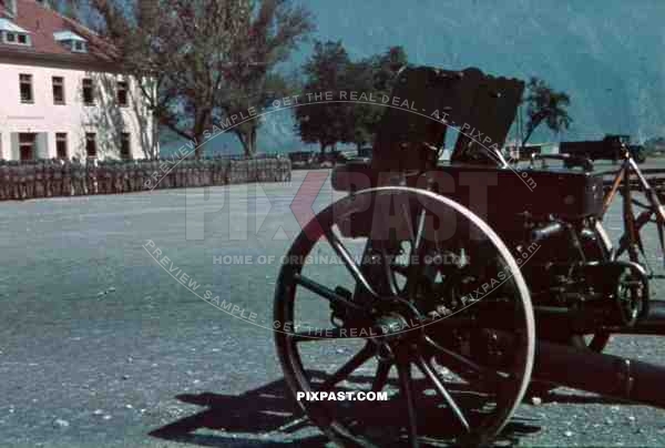 infantry gun at the mountain trooper barracks in Landeck, Austria 1941, Pontlatz Kaserne