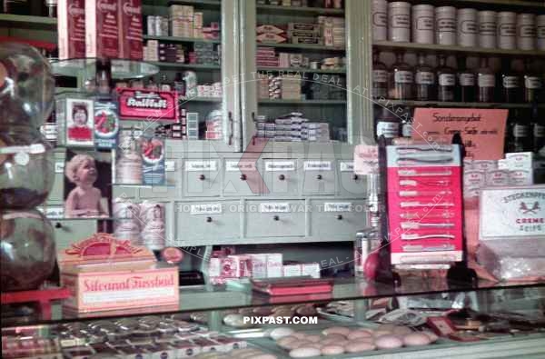 Inside the War time camera and photo shop ( Rudi Rostin ) in Drogerie Bollberg / Wormlitz, Halle Saale 1940