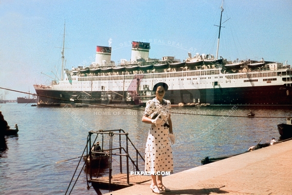 Italian steam liner Ship Conte di Savoia in Venice Italy 1940, 8th June