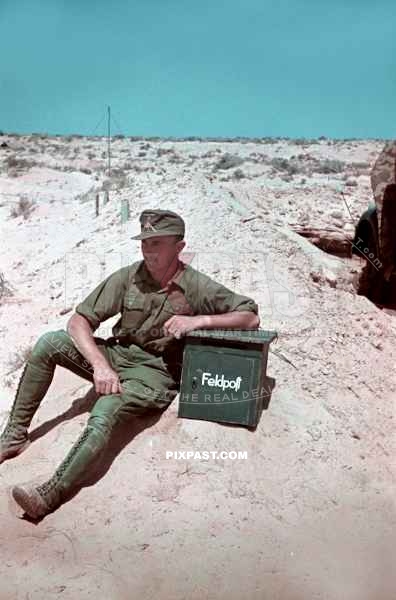 Kappler with his Feldpost Military Post Box beside a Radio Antenna unit.Tripoli February 1941. 2. Panzer Nachrichten Abt.