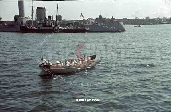 Kriegsmarine SA rowing boat WW1 german cruiser, Kiel Germany 1939