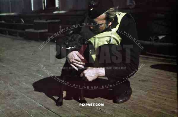 Kriegsmarine seaman with pet dog on a warship at the french Atlantic coast 1941