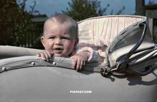 Leipzig baby wagon kind child family Germany 1940 color agfacolor