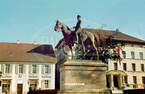Leopold Prinz von Hohenzollern market place statue Denkmal. Sigmaringen, Baden Wurttemberg Germany 1940