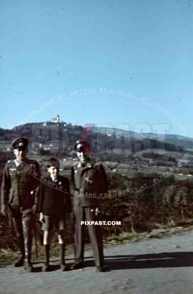 Linz, Österreich, Austria, 1942, View of Wallfahrtsbasilika on Pöstlingberg. Luftwaffe and Wehrmacht officer, flight badge.