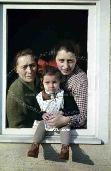 little girl with her mother and grandmother at the window, Germany 1937