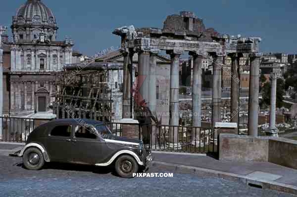 Luftwaffe flak officer with Krim Shield of the Leichte Flak Abteilung 99 (mot) in Rome Italy 1944 with staff car.