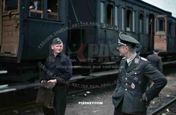 Luftwaffe pilot at the railway yard in Stendal, Germany 1940